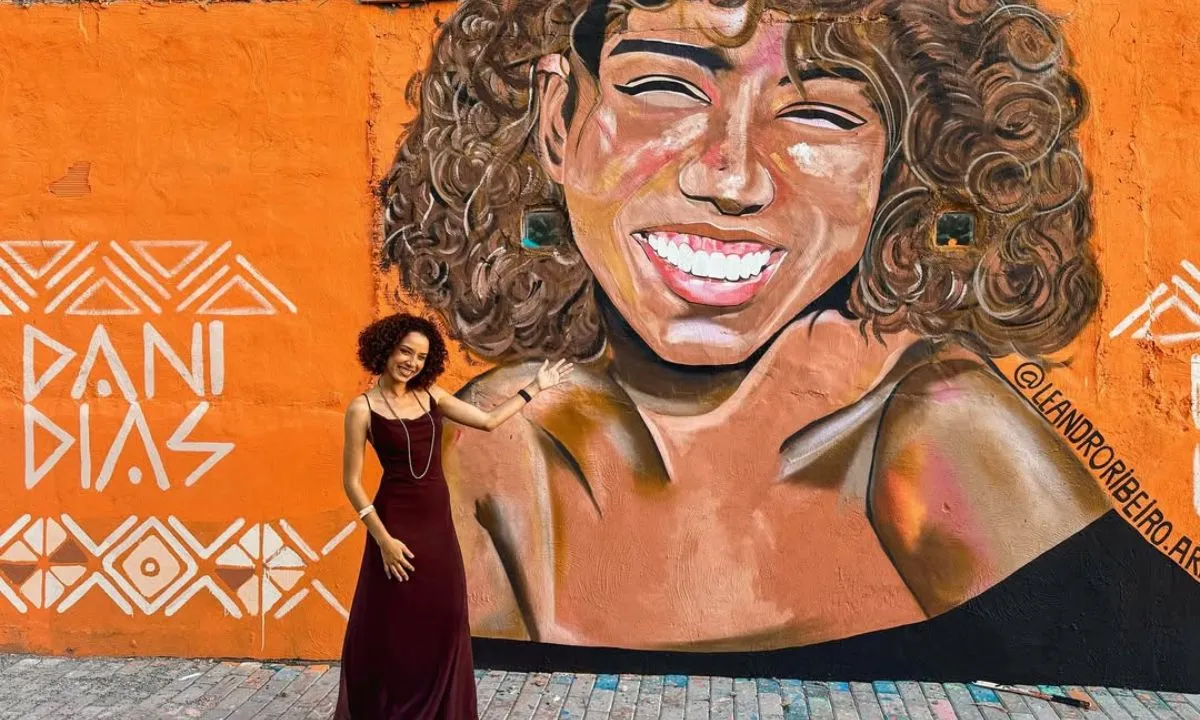 No Instagram, Daniela Dias comentou: "Entre tantos sonhos, nunca imaginei ser homenageada com um retrato meu em um dos muros da cidade que me formou."