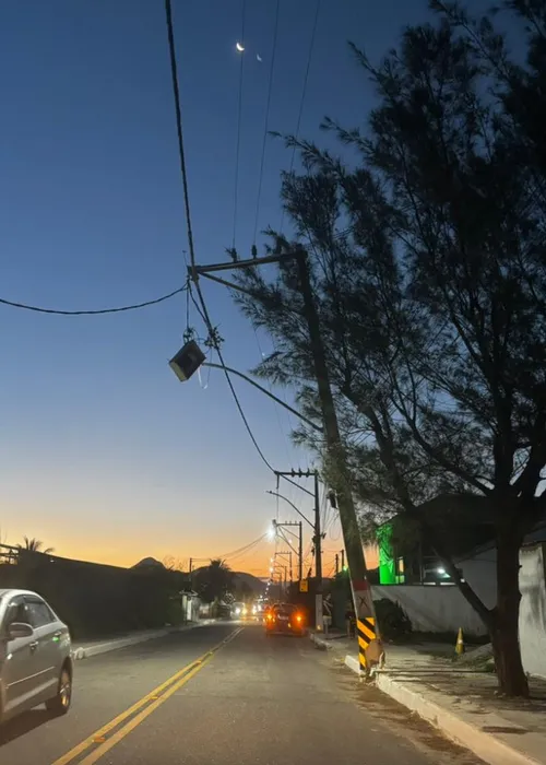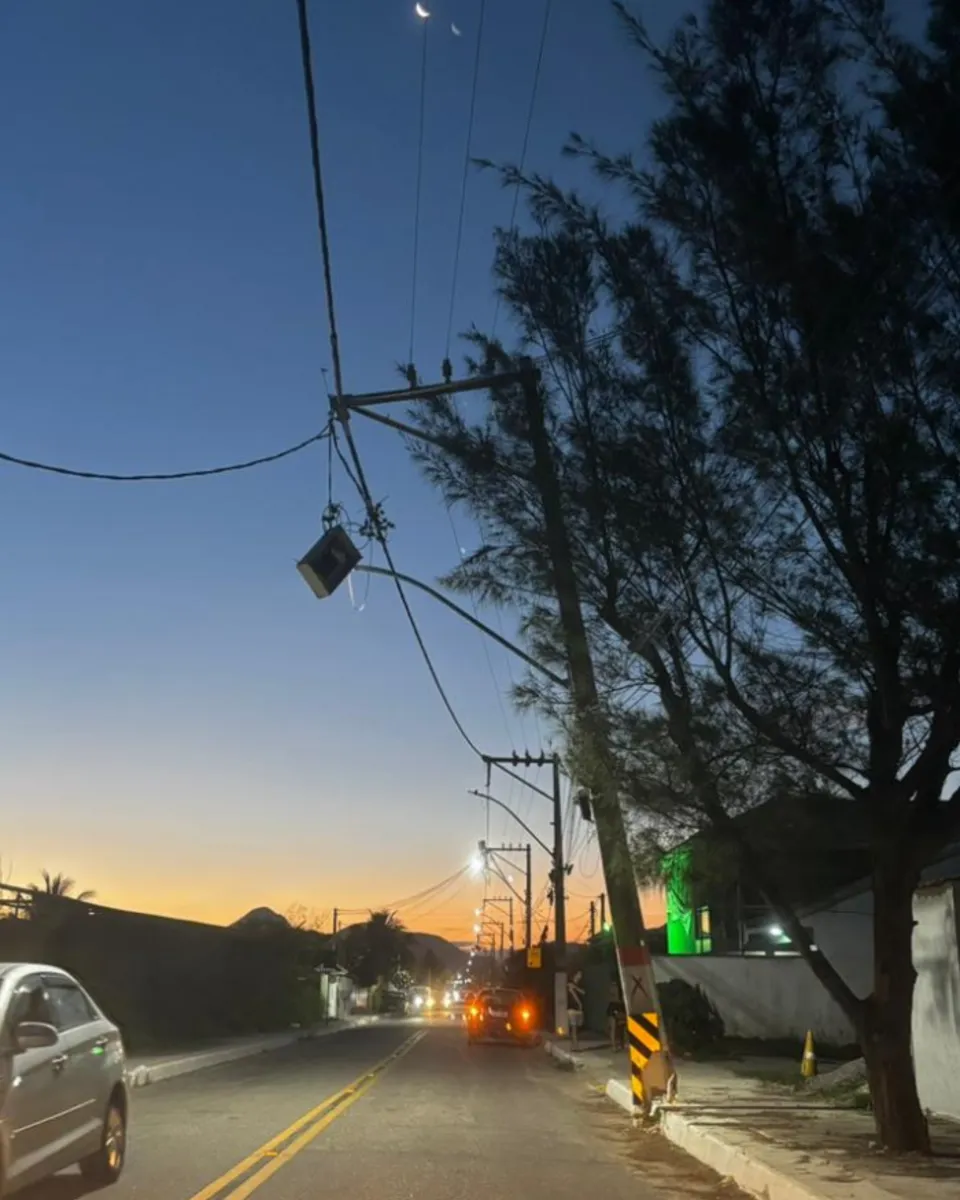 O problema ocorre na Avenida Oscar Niemeyer, via que fica ao lado da orla da Praia de Itaipuaçu. Em imagens, é possível ver a estrutura base do poste corroída e quase inteira deteriorada, ainda por pouco presa ao chão.