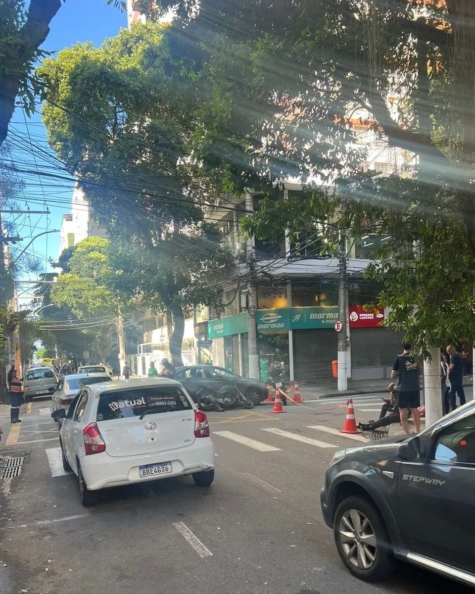 Um acidente envolvendo um carro e uma motocicleta na rua Tavares de Macedo, esquina com General Pereira da Silva, em Icaraí, na Zona Sul de Niterói, deixou duas pessoas feridas na manhã desta quarta-feira (19).