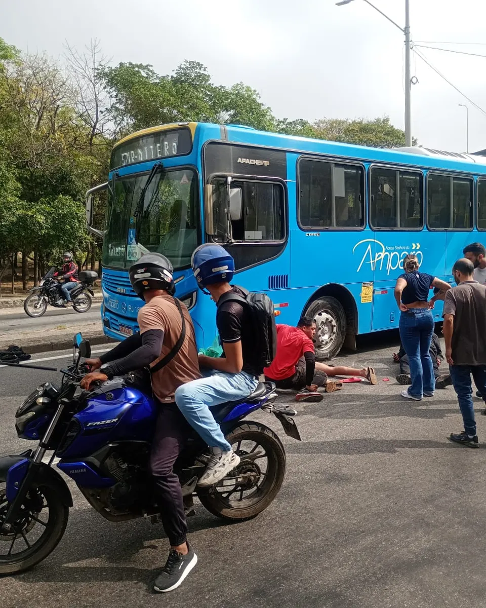 Grave acidente com piloto de moto embaixo de ônibus em Niterói