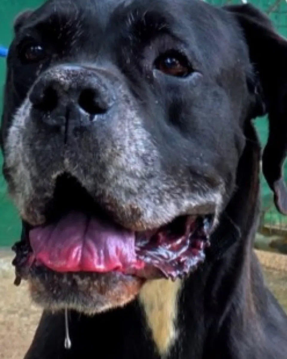 O cachorro Scooby, da raça cane corso, recebeu alta nesta quinta-feira (6) do Hospital Veterinário Municipal São Francisco de Assis, na Zona Norte do Rio, após ter sido baleado durante a megaoperação policial nos complexos do Alemão e da Penha, no dia 28 de outubro.