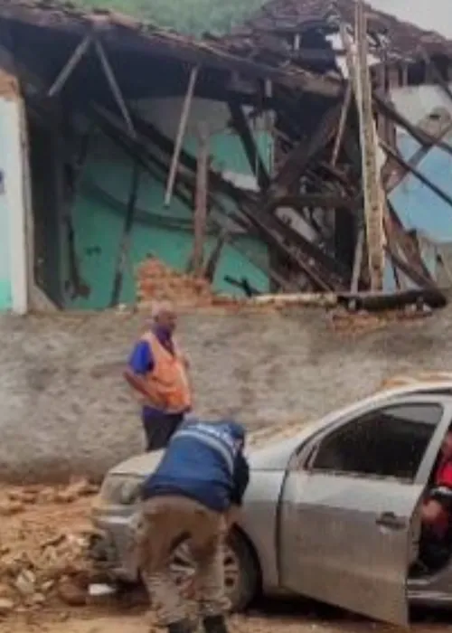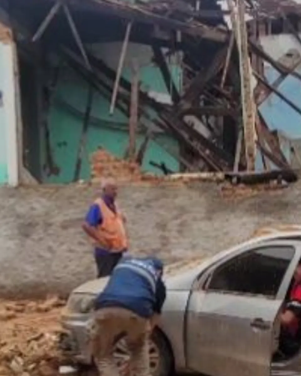 Parte da construção caiu sobre veículos próximos, atingindo um táxi e um carro que estavam estacionados em frente. Outro veículo, parado na garagem de uma residência vizinha, também foi danificado. A Defesa Civil realizou uma vistoria no local, e a rua precisou ser interditada na altura das ruas Campos da Paz e Costa.