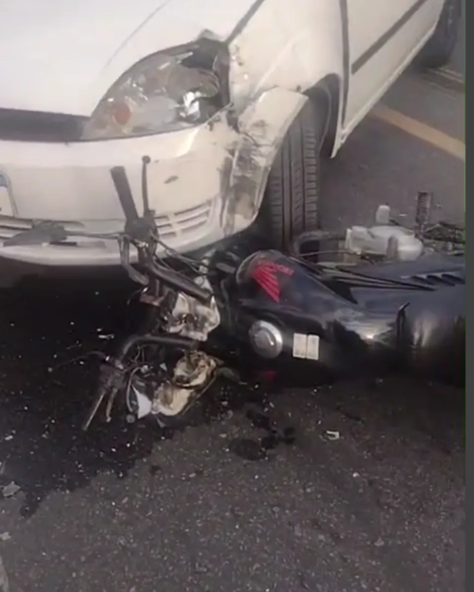 Apesar das imagens mostrarem a moto bastante danificada próximo a uma das rodas dianteiras do carro, os bombeiros não confirmaram se foi o motociclista ou até mesmo uma pessoa na garupa que se feriu no acidente. A Polícia Militar informou que está no local, e a ocorrência ainda está em andamento.