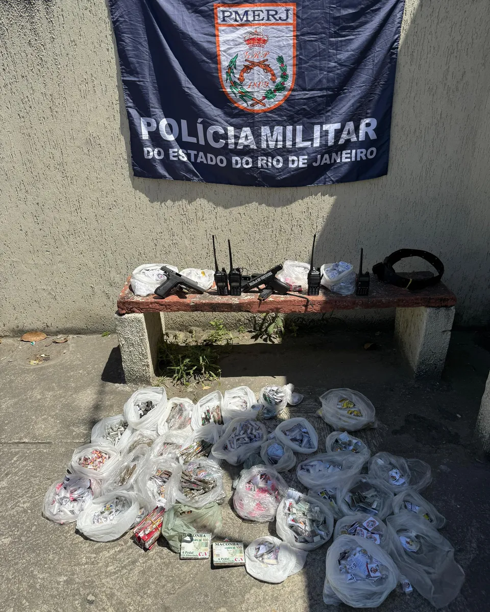 Durante a operação, os agentes apreenderam: duas pistolas, radiocomunicadores, material entorpecente ainda não quantificado. A ocorrência foi registrada na 75ª DP (Rio do Ouro).