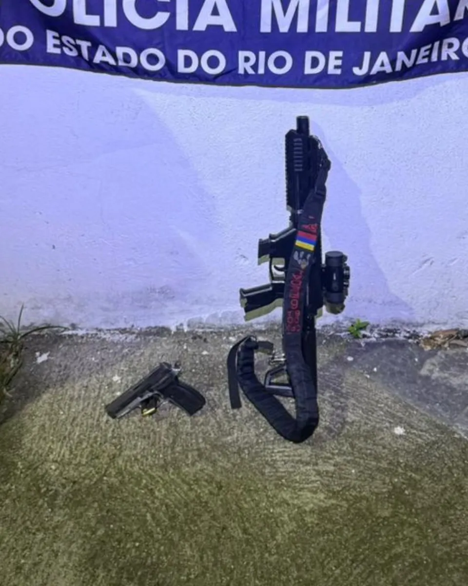 No tiroteio, os militares conseguiram conter o grupo e encontraram no carro o material ilícito: uma submetralhadora HK G36 calibre 9mm, uma pistola 9mm, carregadores e munições intactas.