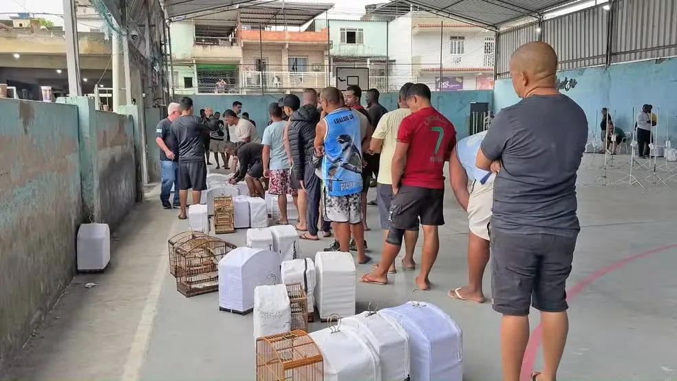 Uma operação da Polícia Civil resultou na prisão em flagrante de 32 pessoas e no resgate de pelo menos 80 aves silvestres que estavam sendo utilizadas em um torneio clandestino de canto de pássaros, nesta quarta-feira (9), em Belford Roxo, na Baixada Fluminense.