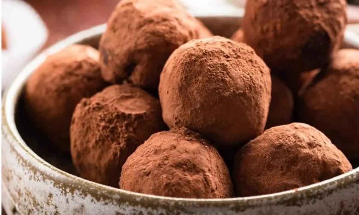 - Enrole os doces e passe no nibs de cacau;