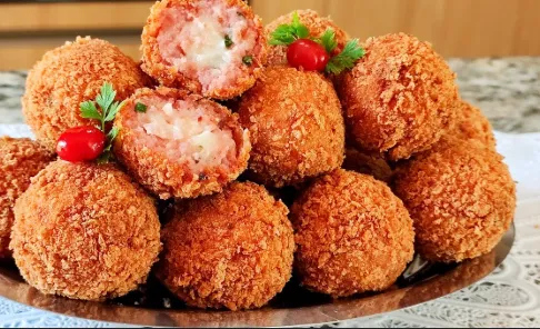 Pegue uma porção da massa, coloque um cubinho de queijo no meio e feche formando uma bolinha.